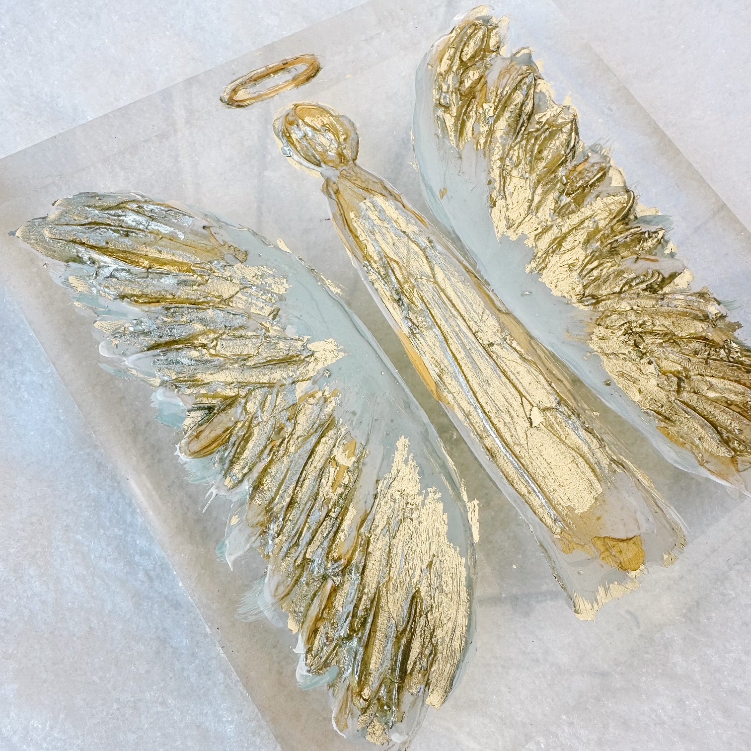 Original Golden Angel painted on clear, glossy acrylic — a modern, luminous twist on classic Christmas décor.