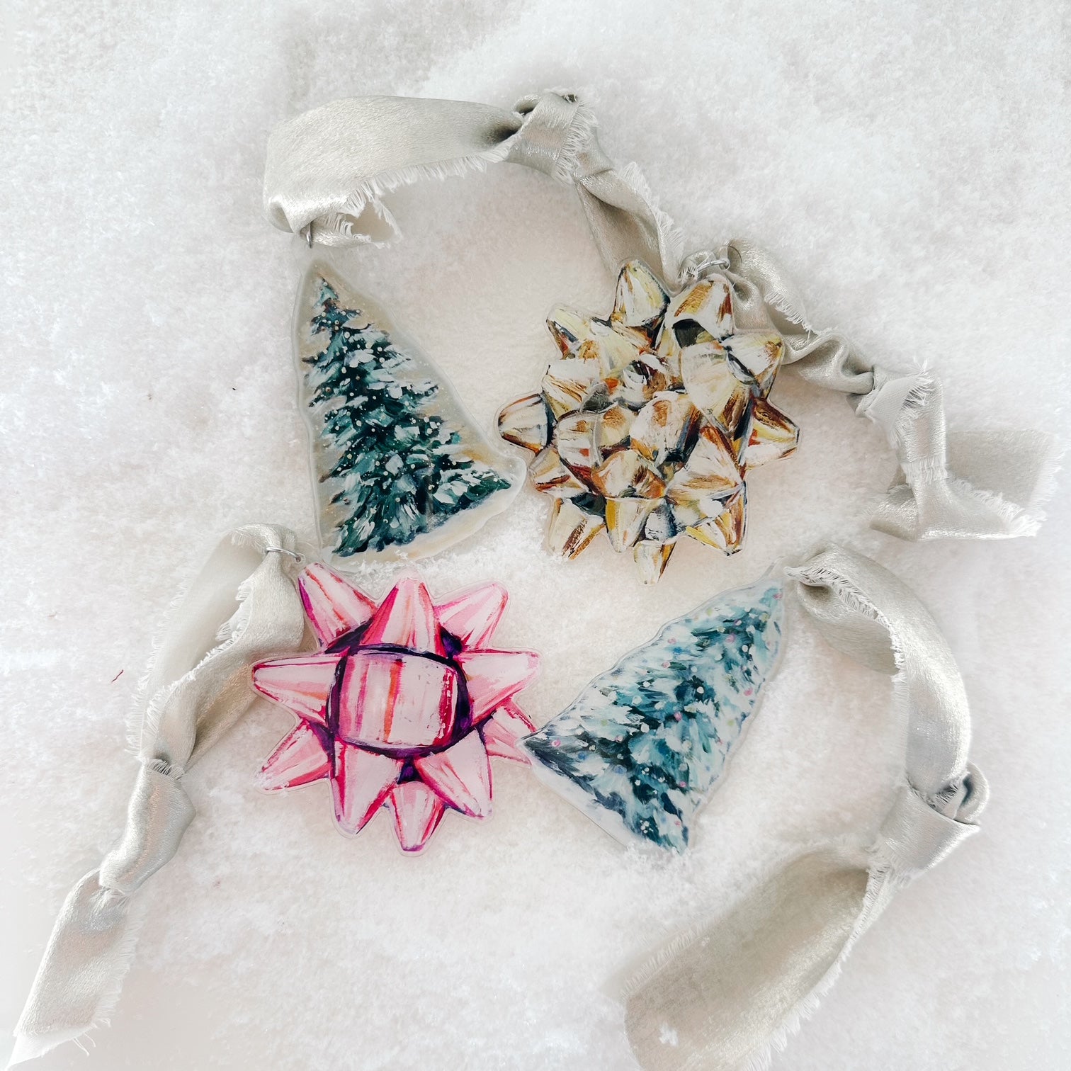 *Collection of 4 holiday themed ornaments crafted from acrylic